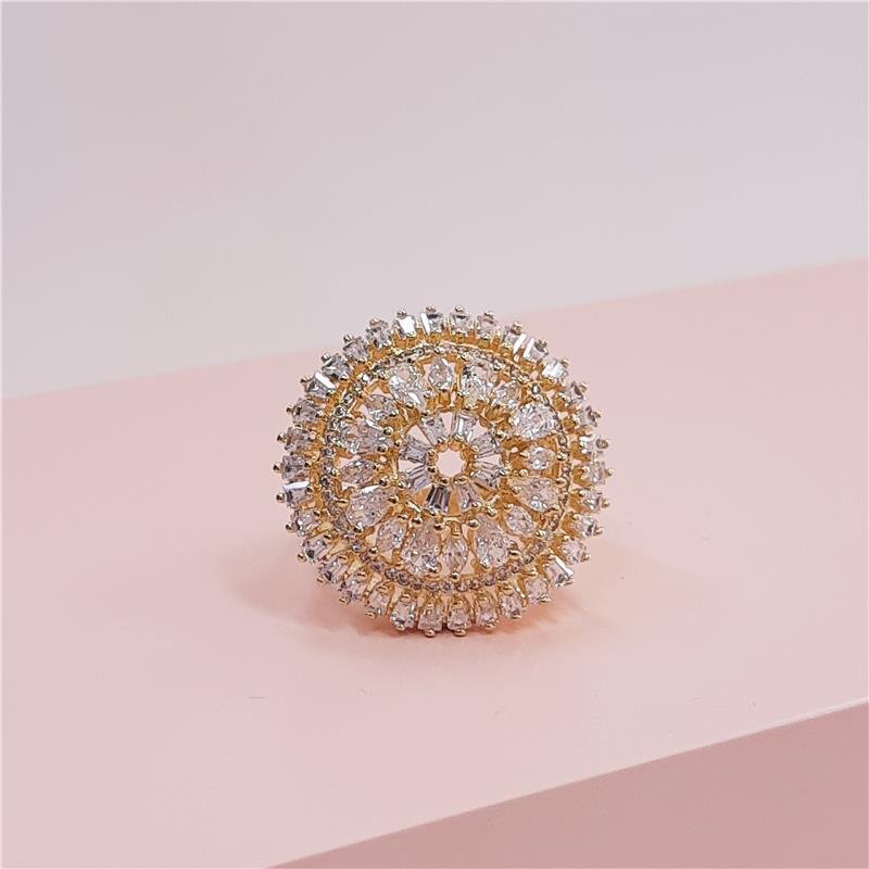 ANEL FOLHEADO OURO COM ZIRCONIAS : 0070148114 Facebook X Pinterest WhatsApp GRADE DE CORES E TAMANHOS : Dimensões aproximadasPeso: 8,20grPedra:CristalBanho antialergico : Dimensões aproximadasPeso: 8,20grPedra:CristalBanho antialergico × ×