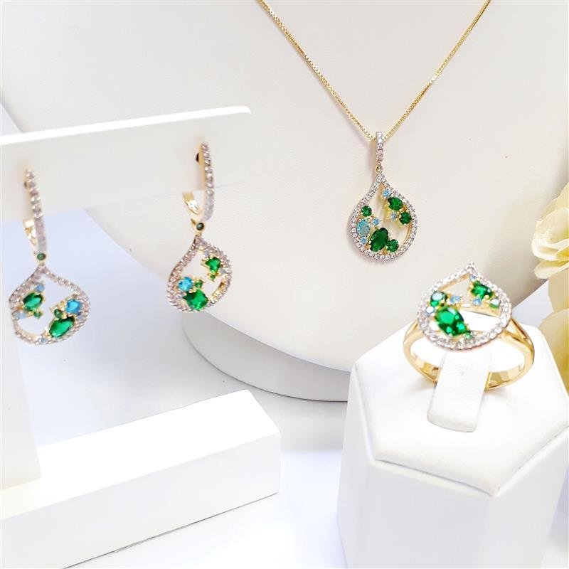 Pedras:Zircônia Cristal, verde e azul.