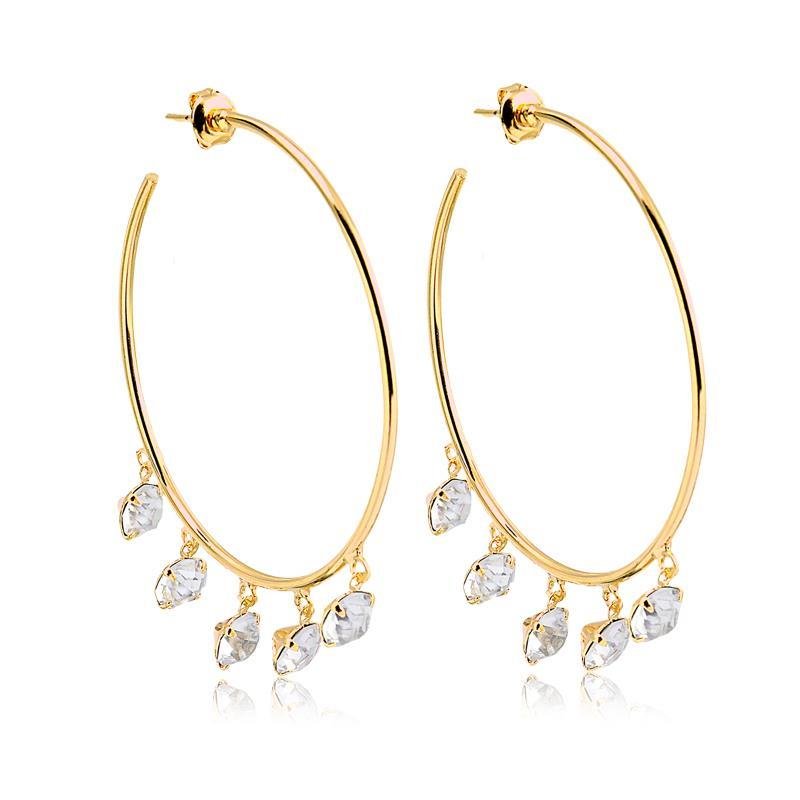 2. BRINCO DE ARGOLA COM PONTOS DE LUZ PENDENTES FOLHEADO A OURO 18K