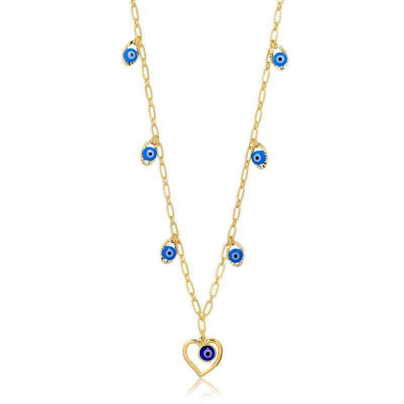 Dimensões Aproximadas: Comprimento Corrente: 30 cm Extensor: 5 cm Pingentes Olho Grego: 0,6 cm Pingente Central: 1,5 cm Peso: 4,20 gr Banho anti alérgico.