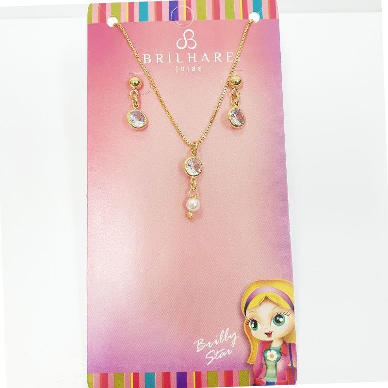 Dimensões aproximadas Diâmetro da corrente: 16 cm Diâmetro do pingente: 2,5 cm Diâmetro do brinco: 2,00 cms Peso 3,10 gr Zirconias cravejadas Banho antialérgico