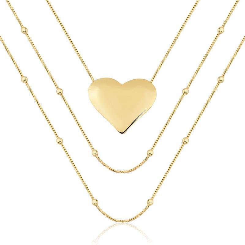 GARGANTILHA TRIPLA COM PINGENTE DE GORAÇÃO LISO FOLHEADA A OURO 18KDimensões Aproximadas:
