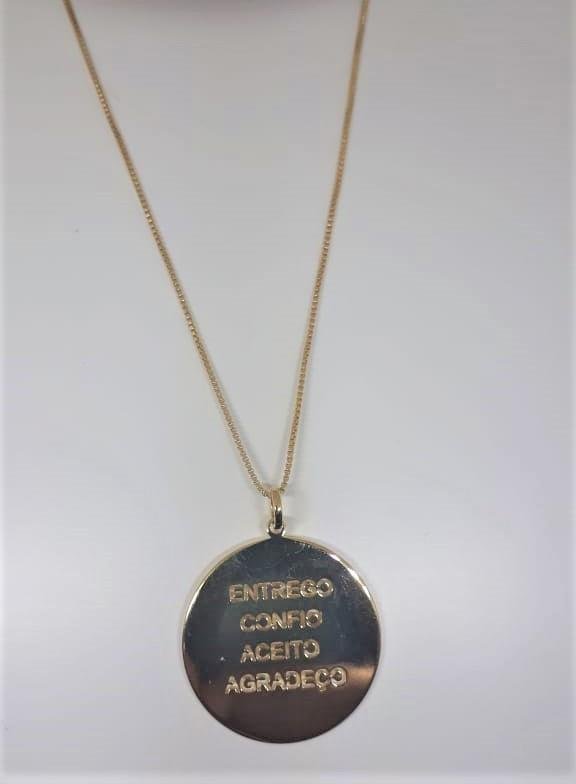 GARGANTILHA VENEZIANA COM MEDALHA ¨ENTREGO CONFIO ACEITO AGRADEÇO¨ FOLHEADA A OURO : 0030465503 Facebook X Pinterest WhatsApp GRADE DE CORES E TAMANHOS : Dimensões Aproximadas:Comprimento:40 cmCorrente:VenezianaDiâmetro Pingente: 2,5cmPeso:6,5 grBanho: Anti AlérgicoFecho redondo : Dimensões Aproximadas:Comprimento:40 cmCorrente:VenezianaDiâmetro Pingente: 2,5cmPeso:6,5 grBanho: Anti AlérgicoFecho redondo × ×