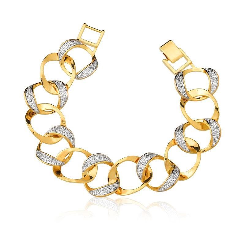 Características: Comprimento da pulseira 20 cm Largura dos elos 2 cm Elos lisos e cravejados em zirconia